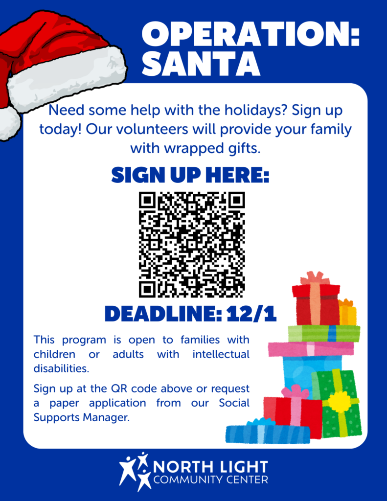 Our volunteers can provide your family with wrapped gifts. Gifts must be picked up at North Light Community Center – 175 Green Ln, Philadelphia PA 19127 between December 17-19.