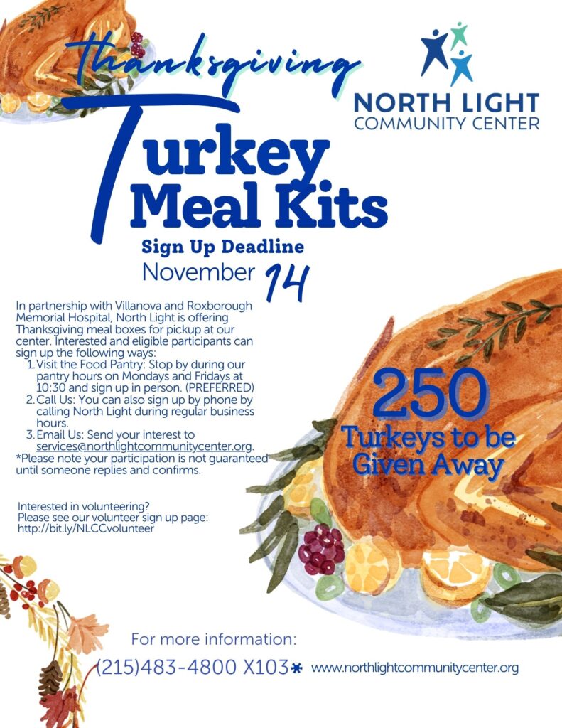 In partnership with Villanova and Roxborough Memorial Hospital, North Light is offering Thanksgiving meal boxes for pickup at our center.